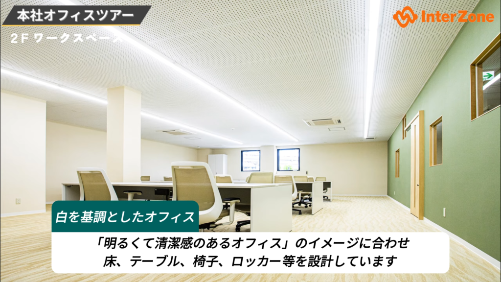 今回は、「オフィスツアー」といったテーマでインターゾーン本社のオフィス案内を行っていきたいと思います。