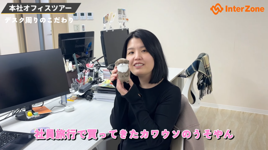 1つ目は、社員旅行で買ったカワウソのぬいぐるみ「うそやん」です。ストレスを感じたときに癒してもらっています。