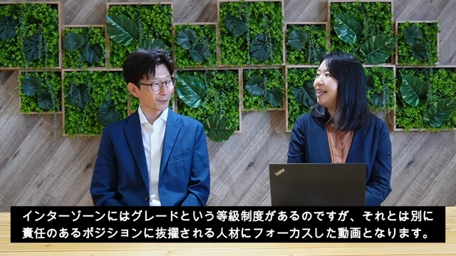 *インターゾーンにグレードという等級制度があるのですが、それとは別に責任のあるポジションに抜擢される人材にフォーカスした動画となります。