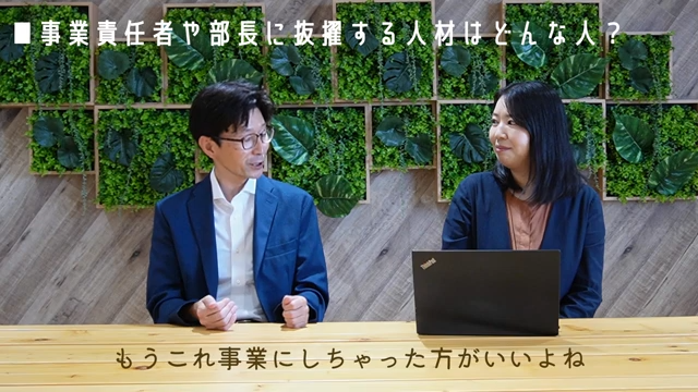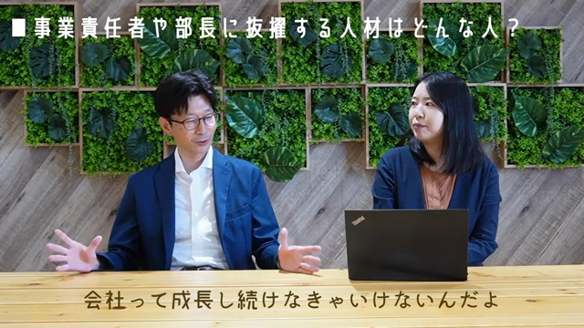 早速ですが、今日のテーマはですね、「事業責任者や部門長に抜擢される人材」について質問をしていきたいと思います。というのも私は普段面接をしていて、よく求職者の方に、「活躍している人材の共通点を教えてください」という質問をいただきます。 ただ結構抽象的なので、社長から見て、「事業責任者に抜擢する人」、「部長に抜擢する人」と決める時のポイントをより具体的に聞いていきたいと思います。